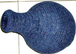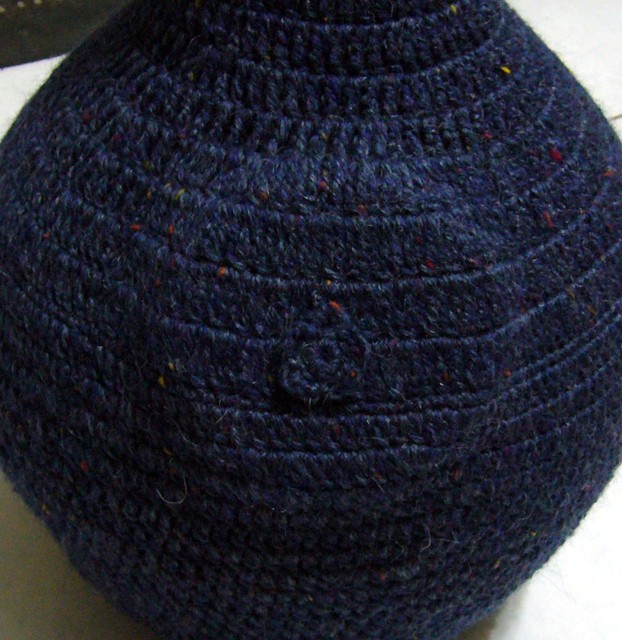 Jeremy的老婆大人今天幫這個「大肚國王」織了一件美美的毛線新衣,由於「小巫」這巫毒鼓是個不規則的立體圓柱、圓球外加有小圓突起複合體的樂器,所以她在編織時,是經過多次的實驗與測量,才完成了這件十分合身的「國王新衣」;並為它的小打擊凸起面上編了個小花作為標示「著裝」方向的巧思創意,更讓這件新衣看起來可愛許多。